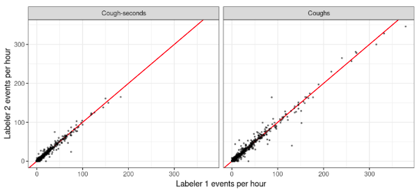 Agreement in hourly cough counts between two independent labelers: