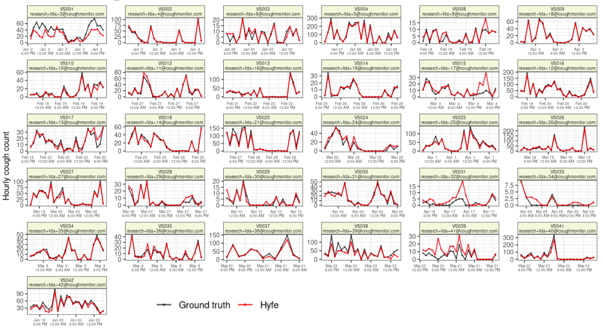 Patient-specific Hyfe vs ground truth cough counts: